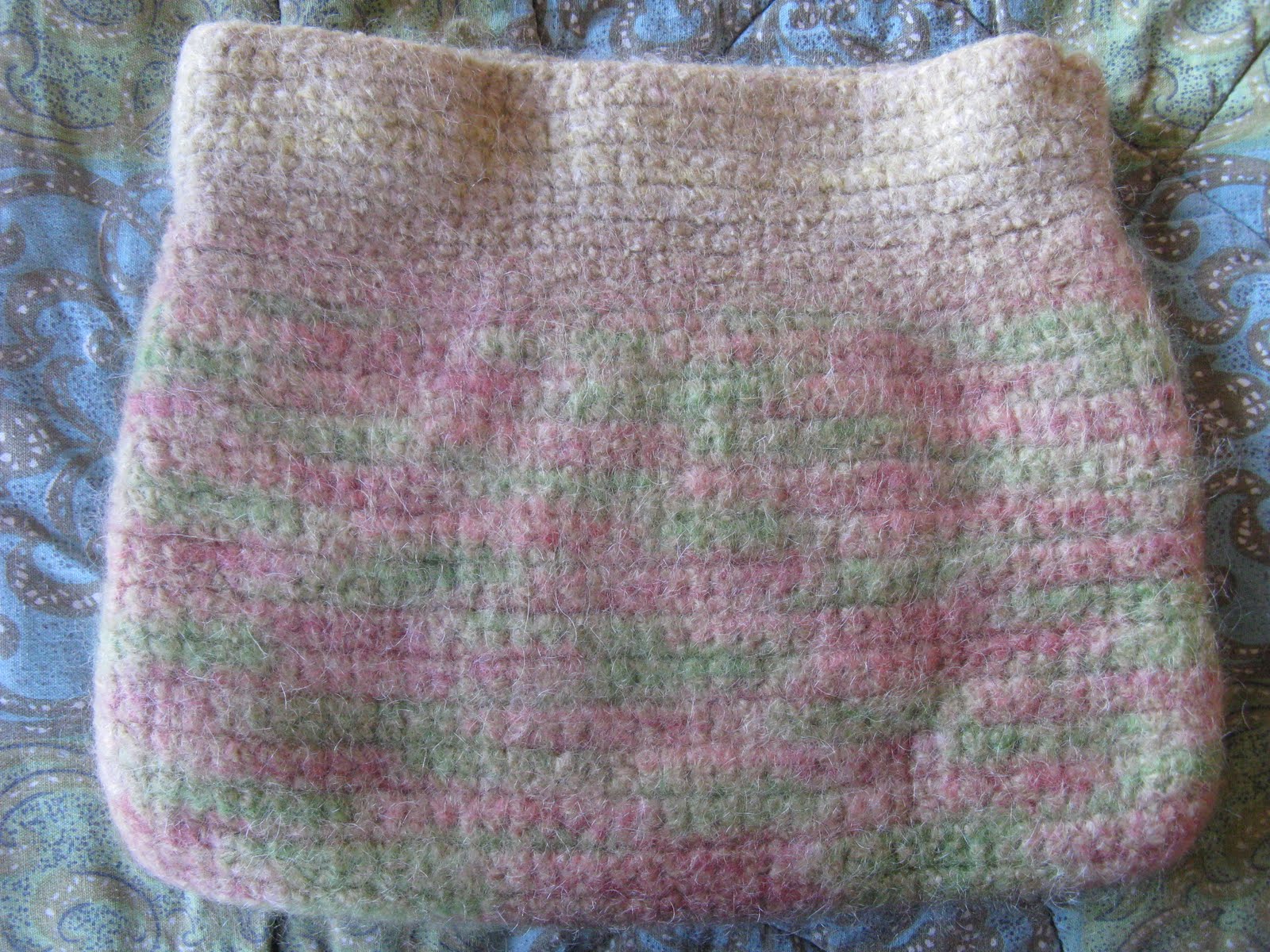 When I was away in Hobart last weekend I bought some pretty mohair yarn from a fancy knitting shop. On Monday I crocheted it together with a wool and alpaca yarn into a bag.